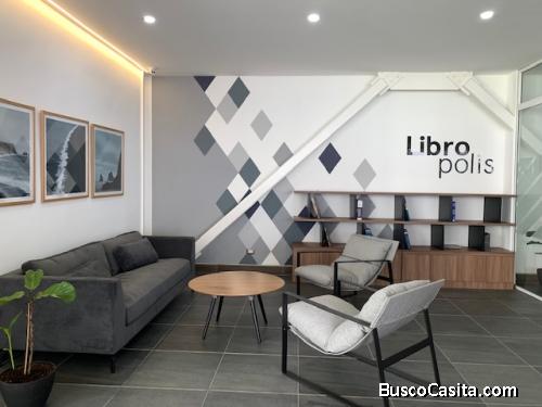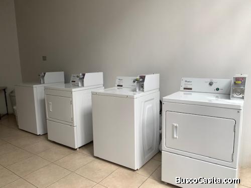 El condominio tiene 5 torres de apartamentos de reciente construcción, cuenta con control de ingreso vehicular y peatonal, seguridad 24/7, áreas verdes y caminamientos, tiendas en el interior del complejo, cancha deportiva, área de lavandería comunal, salón social con baños, un área preciosa de biblioteca con salitas para lectura, 2 salones de business center privados muy bonitos.