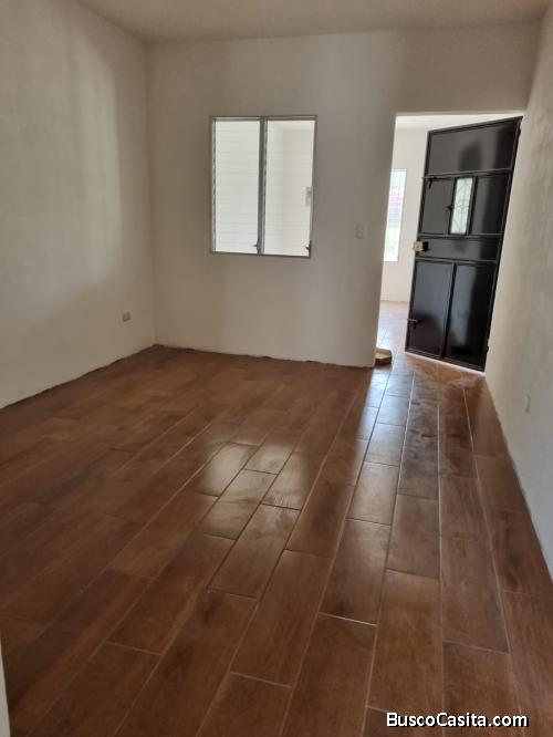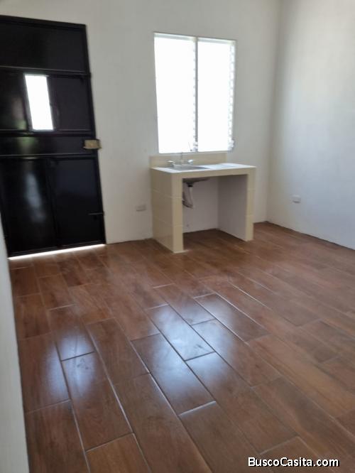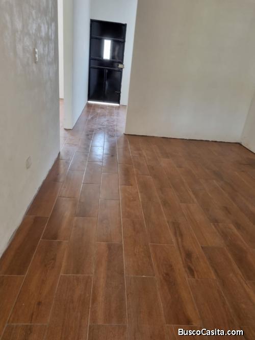Casa nueva con dos dormitorios, 2 salas, cocina, comedor, baño, garage con terraza. No cuenta gabinetes de cocina.