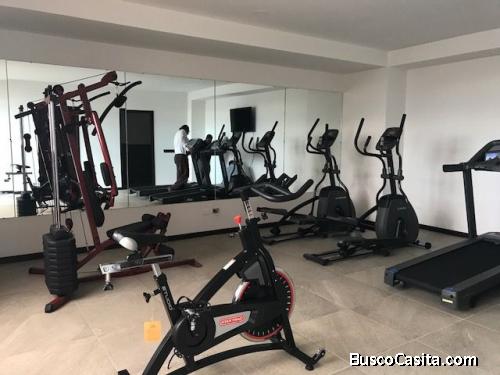 En nivel bajo, con 2 habitaciones, 2 baños completos, línea blanca (torre de lavadora y secadora, estufa, dish-washer, refrigeradora), cortinas y black-outs instalados, lámparas en todos los ambientes. 2 áreas de balcón. El edificio tiene salón social, área de juegos para niños, gimnasio equipado, piscina en terraza, hermosas vistas. CCTV en todas las áreas, parqueo de visitas, parqueo de inquilinos en sótano, 2 elevadores, sistema contra incendios, planta eléctrica para todo el edificio, área de lobby con recepción.