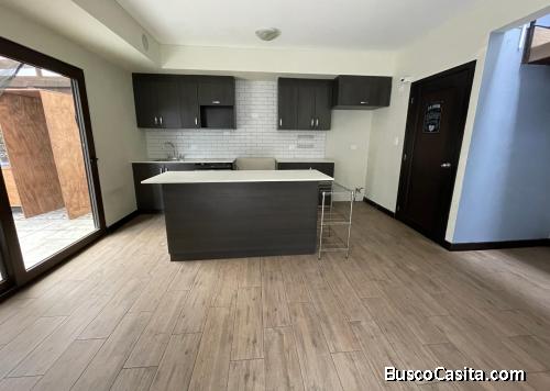 Alquilo Casa con amplia sala-comedor-cocina en un solo ambiente con barra desayunadora de granito, gabinetes de cocina, iluminación, ventilación y conexión bluethoot,