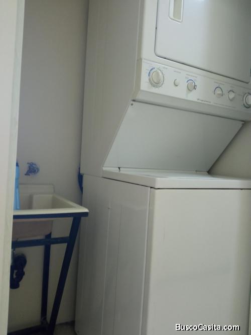 El Apartamento cuenta con: sala , comedor, cocina con gabinetes, estufa, refrigeradora, área de lavandería con torre de lavadora y secadora, pila, calentador de agua general, una habitación amplia con cama , closet , baño y muebles de baño, parqueo para 1 vehículo.