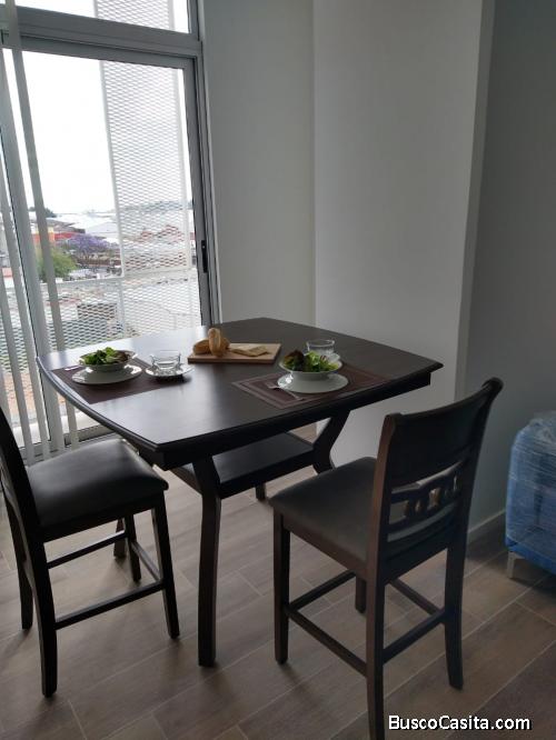 Apartamento Tipo Studio, se encuentra totalmente amoblado, cuenta con sala-comedor, cocina con gabinetes y línea blanca, balcón, 1 baño, excelente iluminación y ventilación natural y parqueo para 1 vehículo.