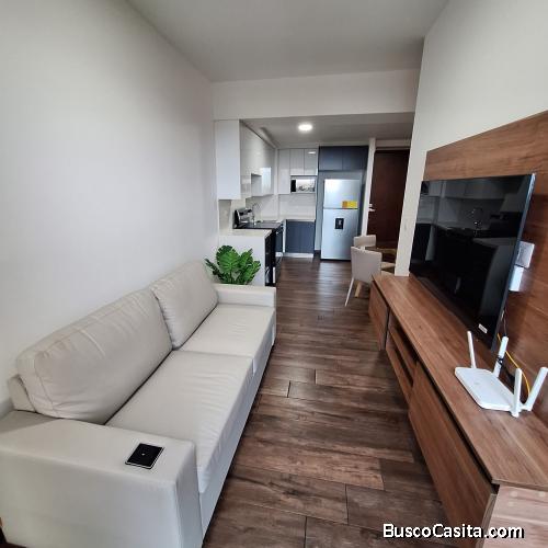 El apartamento es totalmente nuevo y cuenta con electrodomesticos, implementos de cocina y cristaleria.