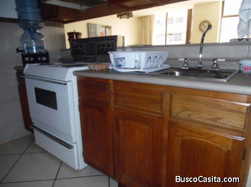 Tiene Distribución excelente, sala, comedor, amplia Cocina equipada, habitación con amplios closet, Lavandería equipada , baño completo, un parquéo, todos sus ambientes son bien Iluminados, Completamente amoblado y Equipado, lamparas y cortinas.