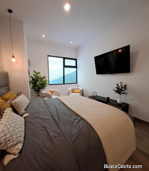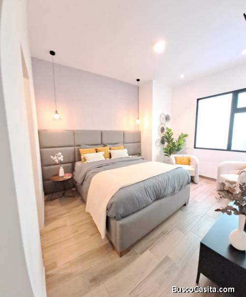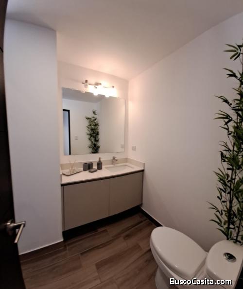 -72m2 de apartamento (salacomedor, cocina, 2baños, lavandería, balcón, dormitorio principal con WC, dormitorio secundario) home office, 3 metros de balcón, 25 metros de parqueo, chapa electrónica, Top de cuarzo, Incluye calentador, balcones, piscina.