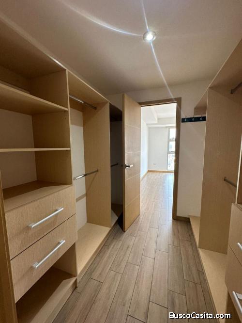 Dos habitaciones, la principal con walking closet, cortinas, amplios ventanales, muebles y espejos en baño