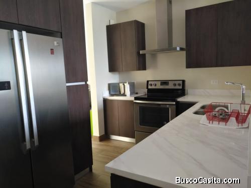Amplio y moderno apartamento en renta , dos habitaciones con closet y wallkin closet, dos baños completos, amplio balcón con agradable vista al sur, cocina con gabinetes y top de cuarzo, línea blanca, sala y comedor espaciosa, lavandería independiente equipada, ( no en closet) habitación de servicio completo, lamparas y cortinas, iluminación natural en todos los ambientes. El edificio cuenta con. Business Center Área de juegos para niños Casa Club Sala de cines para 16 personas Jacuzzi y rea de solárium Área de recreación para sus mascotas Sky lounge Áreas deportivas y fogata. Contacto Leonel Rodas 5981-9252 Código apr-230420