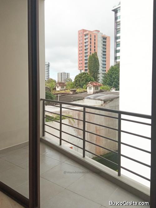 El apartamento es completamente nuevo, se encuentra en edificio nuevo de 6 niveles y 4 sótanos, con una excelente ubicación, cuenta con vestíbulo, baño de visitas, espacio para colocar escritorio para estudio, cocina abierta equipada, sala-comedor, balcón grande, lavandería equipada, dormitorio y baño de servicio, dos habitaciones, habitación principal con walk-in closet, balcón pequeño y baño, habitación secundaria con closet y baño, parqueo para 2 vehículos.