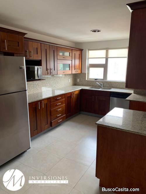 Apto de 268 mts2. Cuenta con Sala con balcón, comedor, baño de visitas, cocina equipada, lavandería con línea blanca, cuarto de servicio, sala familiar, area de blancos, Dormitorio Master con balcón, Jacuzzi, baño y WC, 2 dormitorios secundarios c/u con baño y WC. 3 parqueos.