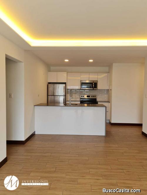 Cuenta con área de 80mts2, cocina, sala, comedor, 2 habitaciones, 2 baños, área de lavanderia, 2 parqueos, linea blanca,el edificio cuenta con amenidades, terraza social, churrasqueras, área para ejercicios al aire libre, gimnasio, área de coworking, área para mascotas, parqueo de visitasy baños de servicio en cada nivel.