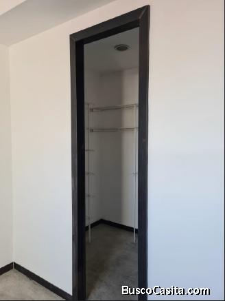 El apartamento se encuentra ubicado en nivel alto, cuenta con balcón con puerta corrediza, sala-comedor, cocina con gabinetes y línea blanca, espacio para utilizarlo cómo bodega, amplios ventanales que permiten iluminación y ventilación natural, habitación con walk-in closet, área de lavandería en sótano del edificio y parqueo para un vehículo.