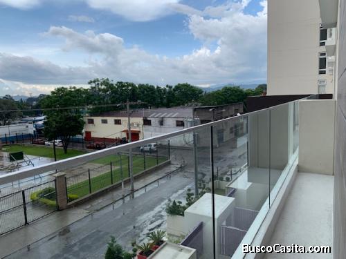 Apartamento nuevo para estrenar de 1 habitación, equipado con línea blanca, galería de cortinas, closets y gabinetes de cocina. 44 m2 de área habitable y un espacio de parqueo techado en sótano. PRECIO DE RENTA INCLUYE MANTENIMIENTO.