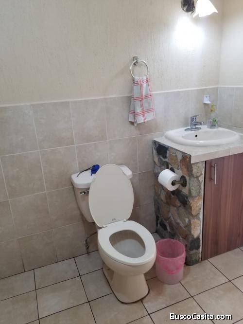 Cuenta con sala, comedor, cocina, área de lavandería con pila y conexiones para lavadora y secadora (220V), 2 habitaciones, 1 baño, entrada privada, patio, garage para 1 vehículo y terraza compartida con el primer nivel.