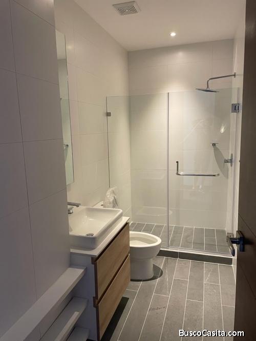 Apartamento de 1 habitación con amplio balcón y hermosa vista. Ambientes bien iluminados, finos acabados en madera, artefactos, cocina con gabinetes y top de quarzo blanco, línea blanca en cocina y lavandería.
