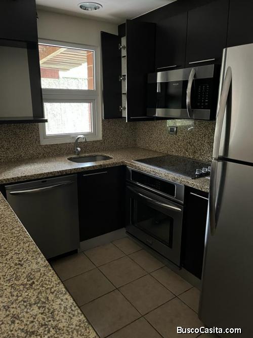 - Línea blanca completa Frigidaire, top cocina, horno independiente, lavaplatos, microondas extractor, torre lavadora-secadora.