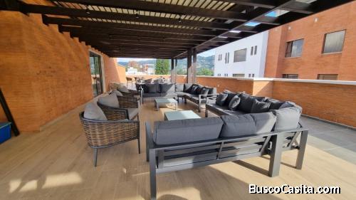 Apartamento completamente nuevo, cuenta con sala-comedor, balcón, cocina abierta equipada, área de lavandería equipada, 2 habitaciones, habitación principal con closet y baño, un estudio con baño compartido con visitas y parqueo para dos vehículos.