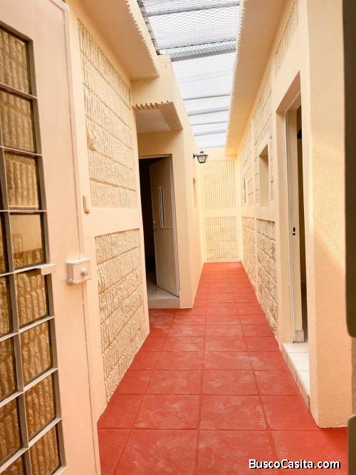 Cuenta con amplios ambientes, dos habitaciones, sala-comedor; cocina con gabinetes, lavatrastos, estufa eléctrica e intercomunicador; área de tina con hidromasaje, sauna seca, patio y pila independiente, tres baños privados con calentador.
