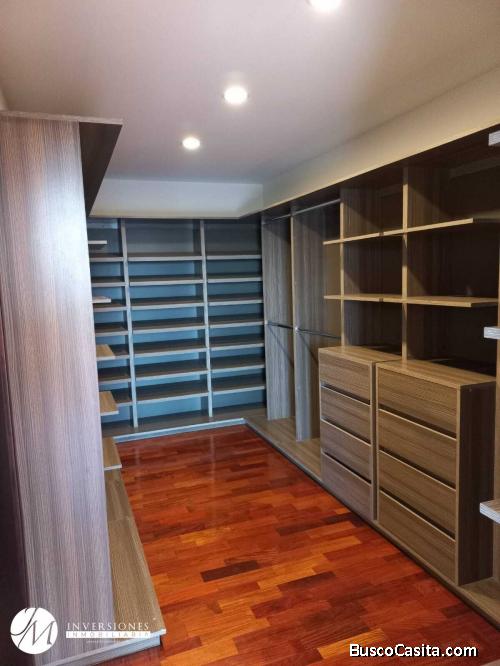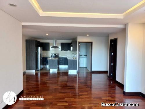 Apartamento cuenta 147 m2 , 2 parqueos, bodega, baño de visitas, balcón, sala-comedor, cocina y lavandería, baño de servicio, dormitorio secundario con closet y baño privado, Dormitorio principal con walking closet y baño privado, edificio con lindas amenidades
