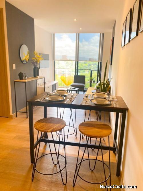 El apartamento se encuentra totalmente amoblado, ubicado en nivel alto, cuenta con sala con balcón y una excelente vista a la reserva natural, comedor, cocina con todos sus electrodomésticos, área de lavandería con centro de lavado, habitación master con walk-in closet y baño completo, habitación secundaria con closet y balcón, baño secundario, parqueo para 2 vehículos en sótano.