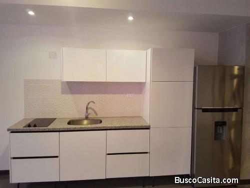 Apartamento tipo estudio sin muebles, solo equipado con línea blanca