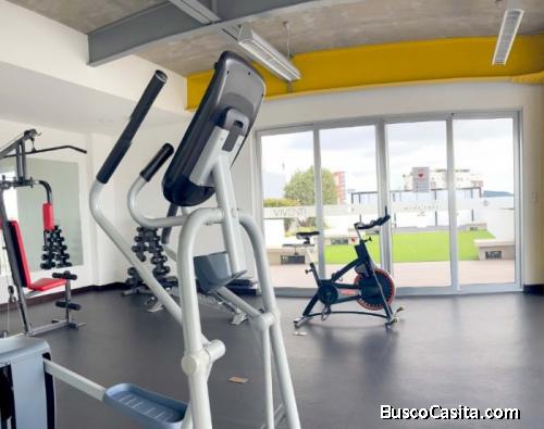 Cuenta con gimnasio, fire pit, salon social, control de acceso a visitas, 2 parqueos bajo techo, limpieza, mantenimiento de áreas comunes, manejo y recolección de basura, elevadores, cámaras, parqueos para visitas.