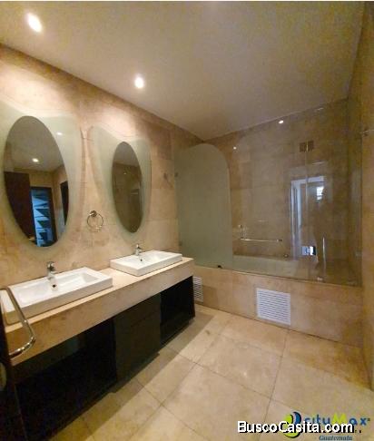 * En baño Master con Jettina, top mármol y muebles bajo lavamanos