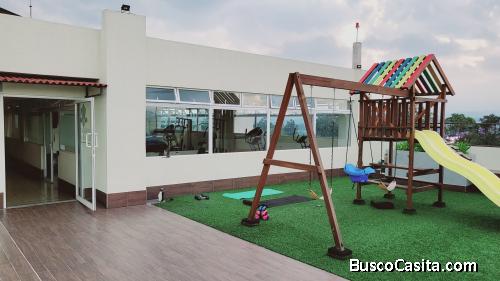 El edificio ofrece amenidades como Motor Lobby, Juegos para Niños, Área verde, Salón de usos múltiples, Gimnasio, Business Center, Canchas Deportivas, así como una increíble vista a la ciudad además cuenta con Pozo propio, circuito cerrado de TV.
