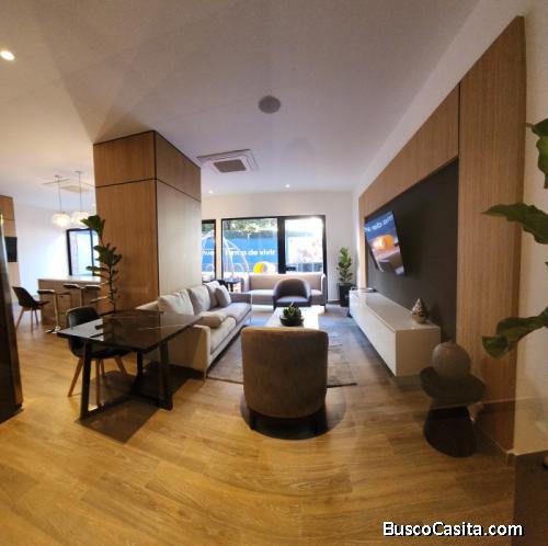 Hermoso Apartamento con finos acabados con 84.62 mts + 25 mts de parqueo, total de 109.62 mts Distribuidos en Sala, comedor, Cocina, Area de lavanderia, 1 Dormitorio Secundario con Closet, 1 Baño Completo, Dormitorio Principal con Walkin Closet y baño completo, 2 parqueos individuales.