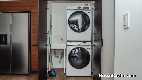 • Incluye línea blanca completa nueva (Estufa LG con Air Fryer y Wi-Fi de 5 hornillas, refrigeradora Samsung con dispensador de agua y hielo de 2 puertas, lavadora Samsung Digital de 48 lb, secadora Samsung Digital de 48 lb, purificador de olores para la estufa FABER, calentador de agua de 40 gal y purificador de agua moderno y estético).