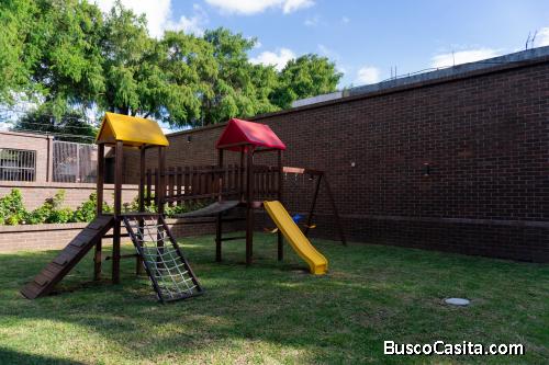 El apartamento cuenta con 2 habitaciones, 1 baño, sala, comedor, cocina, Área de lavandería, 2 Parqueos y Balcón con área verdes para niños y para los perritos de la casa, cuenta con área de entretenimiento, salón de eventos, área de HomeOffice, Pet Friendly, Gimnasio.