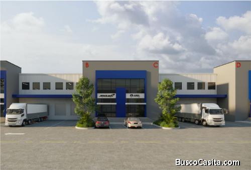 Bodegas desde 560 M2 con doble anden de descarga y opción a una rampa y un anden, altura a hombro 9M y 10.5 a cumbrera