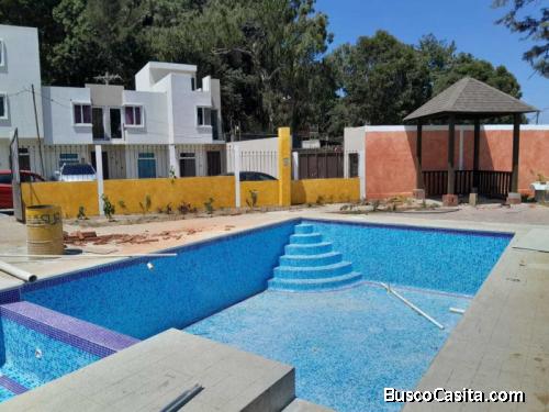 Condominio cuenta con garita de seguridad las 24 hrs, amplias áreas verdes, piscina, casa club, canchas deportivas y área de juegos para niños.