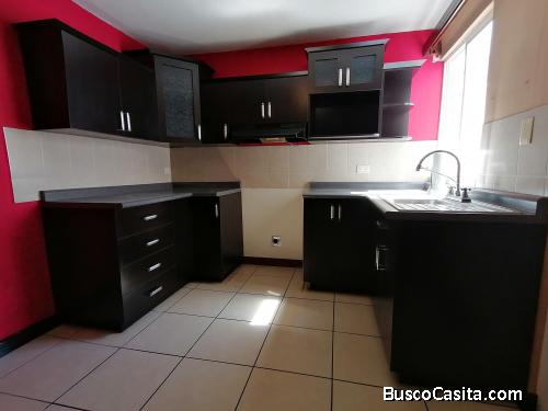 Cocina independiente con gabinetes de cocina y tiene un espacio que se puede usar como bodega, alacena, etc.