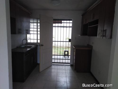 casa de 2 niveles con sala, comedor, cocina, jardín y área de Lavandería, 3 dormitorios y 2 baños completos y 2 parqueos el residenciales cuenta con garita de seguridad área juegos y cancha deportiva