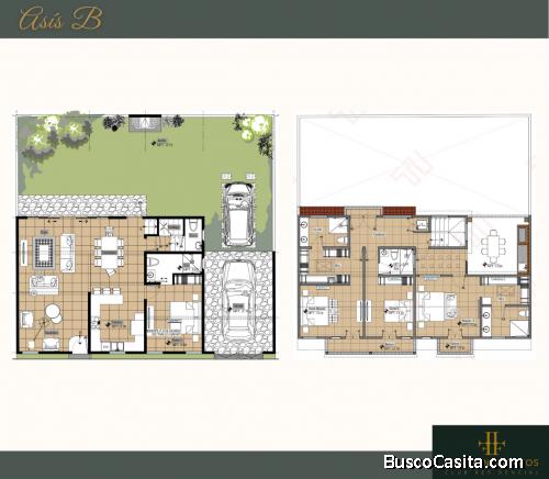 2 habitaciones secundarias con walking closet y baño privado cada una.