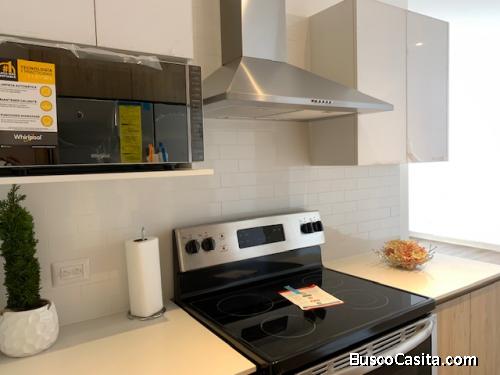 Se entrega equipado con línea blanca completa en cocina y torre de lavado en lavandería, calentador central para todo el apartamento, 2 aires acondicionados (uno en sala y otro en habitación principal), cortinas en Sala y cortinas tipo black outs en habitaciones, espejos en baños así como una linda vista a Carretera al Salvador.