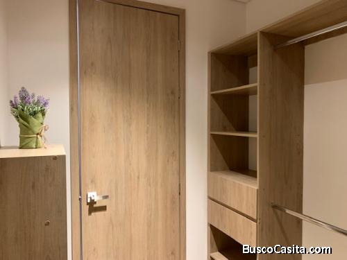 Apartamento listo para estrenar, con linda y bien iluminada área de sala/comedor/cocina, un closet con torre de lavado, pila, extinguidor y calentador, 3 habitaciones. La habitación principal cuenta con su walk in closet, baño privado y las 2 habitaciones secundarias comparten un baño y tienen amplio closet y ventanas grandes con black outs.