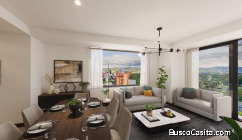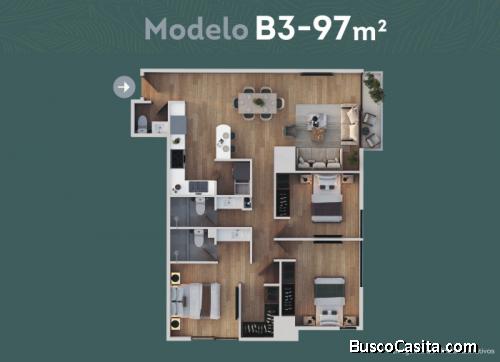 El apartamento cuenta con 97.44 m² habitables y 25 m² de 2 parqueos, cuenta con excelentes amenidades.