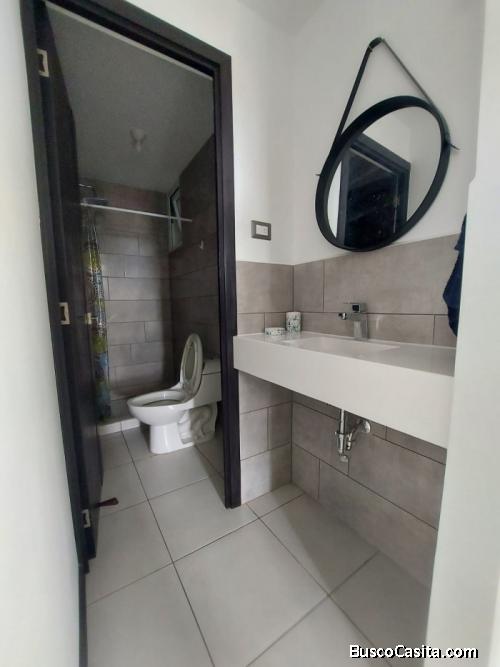 Apartamento consta de 2 habitaciones con closet , 2 baños completos, sala-comedor, cocina con gabinetes, estufa, refrigeradora, 1 cama matrimonial, 1 cama imperial, lavandería torre de lavado (lavadora y secadora)., 1 parqueo.