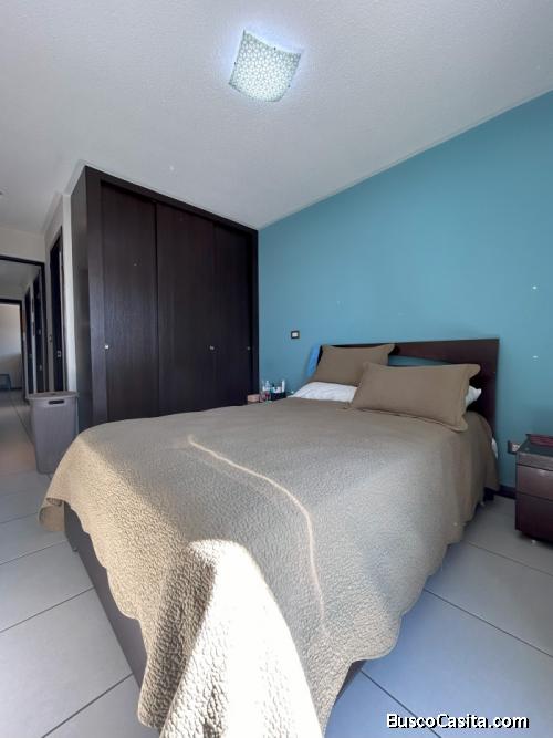 El apartamento cuenta con 3 habitaciones. Además, cuenta con 2 baños completos y dos estacionamientos privados para mayor comodidad. Con un área construida de 89 mts2 habitables y 25 mts2 de parqueos, este apartamento ofrece un espacio eficiente. El apartamento cuenta con 1 balcón, lavandería y línea blanca incluida, lo que facilitará las tareas del hogar.