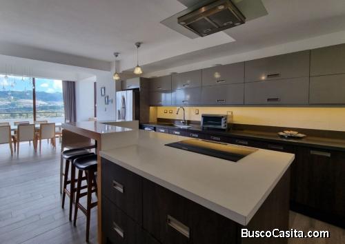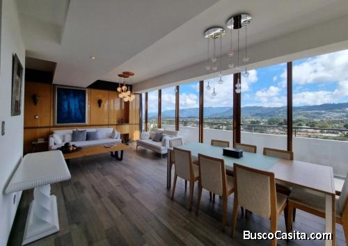 Hermoso Penthouse, totalmente amueblado y equipado, decorado por diseñador de interiores, acondicionado para su estilo de vida, cuenta con una vista agradable hacia los volcanes y la naturaleza; con 229.38m2 habitables de construcción nos ofrece: