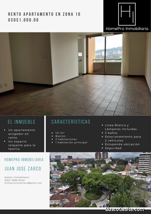 HomePro Inmobiliaria alquila apartamento en zona 10.