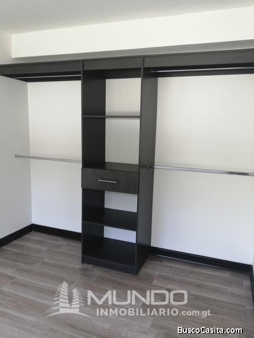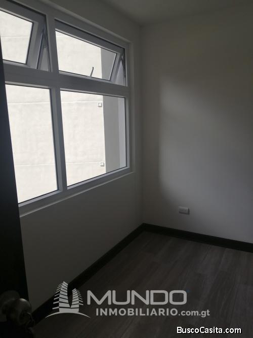 Moderno apartamento en renta al final de la Calzada Roosevelt, edificio Ancona. 3 dormitorios, sala, comedor, cocina con gabinetes, 2 parqueos Área Verde, Área de Juegos para niños Seguridad las 24 horas, garita.