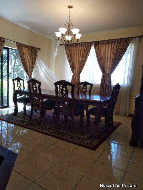 Casa dentro de Condominio, 2 niveles, sala, comedor amplio, sala familiar con balcón, cocina, habitación de servicio, área de pila, amplio jardín, habitación master con Wolking closet, chimenea y baño completo, habitaciones secundarias con closets, amplios ventanales vista a la vegetación y árboles, seguridad las 24 horas, 3 parqueos.