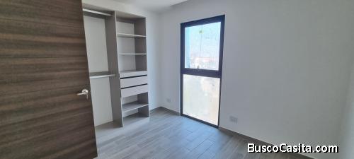 Tres habitaciones con iluminación natural , baño completo en la habitación máster y walkin closet. Dos habitaciones secundarias con closet, Baño compartido con espejos y mueble de baño con top de cuarzo color blanco ,lámparas , amplios ventanales, balcón y ventana corrediza , cómoda sala y comedor, cocina equipada con línea blanca para estrenar.