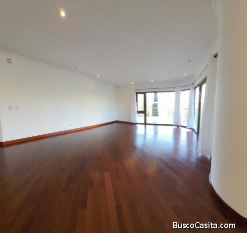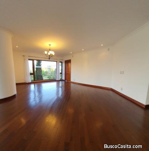 Tiene tres habitaciones 3.5 baños, sala principal y familiar, 2 parqueos, habitación de servicio, cuenta con gimnasio, piscina con pérgola, dos salones para eventos