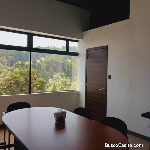 Amplia y moderna oficina de 234m² está esperando por ti. Grandes ventanales permiten que el espacio se ilumine con luz natural y sirven de marco al impresionante y verde paisaje que solo en Muxbal podrás encontrar.