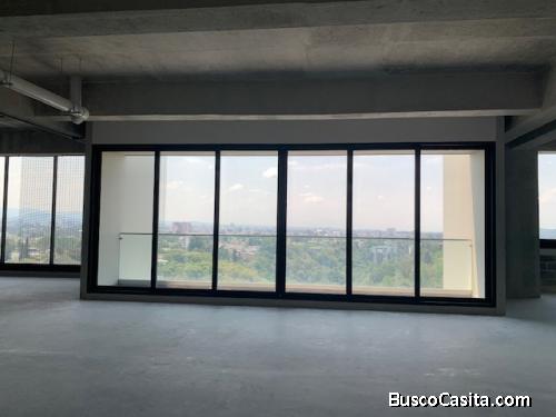 Oficina bastante amplia de 582 mt2 en obra gris, con instalaciones para 4 áreas de sanitarios distribuidas en los dos extremos, instalación para A/AC, con dos puertas de ingreso y un amplio balcón con vista espectacular hacía la ciudad y montañas de Carretera al Salvador y zona 16. Cerca de universidades, comercio, colegios y de Ciudad Cayala.