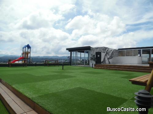 Dos elevadores, pozo propio, área social con gimnasio al aire libre, juegos de mesas, juegos infantiles, área para asados, área de lectura, vista panorámica a la ciudad. El apartamento, cuenta habitación con balcón, baño, comedor, cocina tiene su estufa y extractor de olores, y sala que también incluye balcón