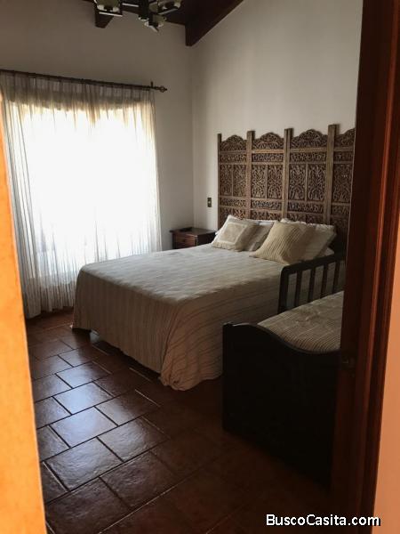Rento hermosa casa amplia amueblada dentro de uno de los más exclusivos residenciales en Antigua. Residencial con excelentes accesos a varios puntos de Antigua y las afueras, cuenta con garita de seguridad las 24/7, amplias áreas verdes, calles empedradas y área de juego para niños.